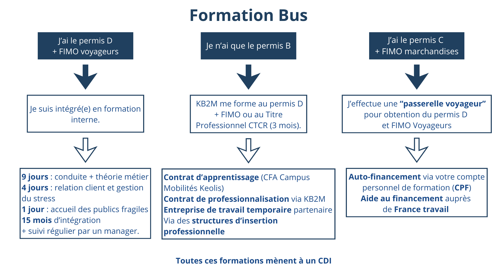 Chez KB2M, la formation est un pilier central : elle permet d’intégrer les nouveaux conducteurs, de renforcer les compétences et d’assurer une qualité de service constante pour les voyageurs. L’équipe formation, accompagne au quotidien les collaborateurs de l’exploitation. Certains ont même exercé sur le réseau : conducteurs, régulateurs, managers, auditeurs…